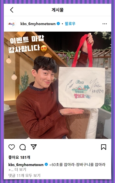 유튜브와 마찬가지로 인스타그램으로 6시 내고향 장바구니를 신청하신 다섯 분을 선정해 진행자의 사인이 담긴 6시 내고향 장바구니를 선물로 보내드립니다.