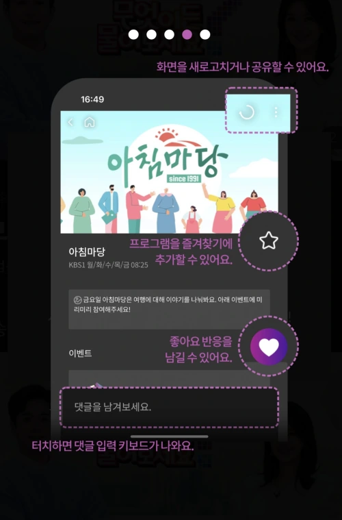 4. 티벗 앱에서 아침마당을 선택하여 이벤트 배너의 참여하기를 눌러 퀴즈 또는 투표에 참여합니다.