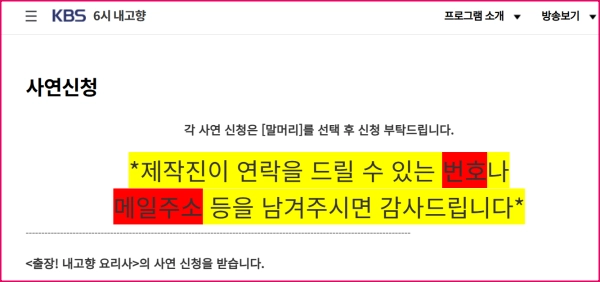 6시 내고향 누리집 연락처
