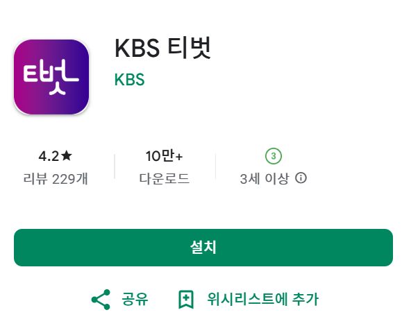 티벗 설치하기 꿀팁: 반드시 KBS가 공식 제공하는 앱인지 확인! 유사 앱 주의하세요.